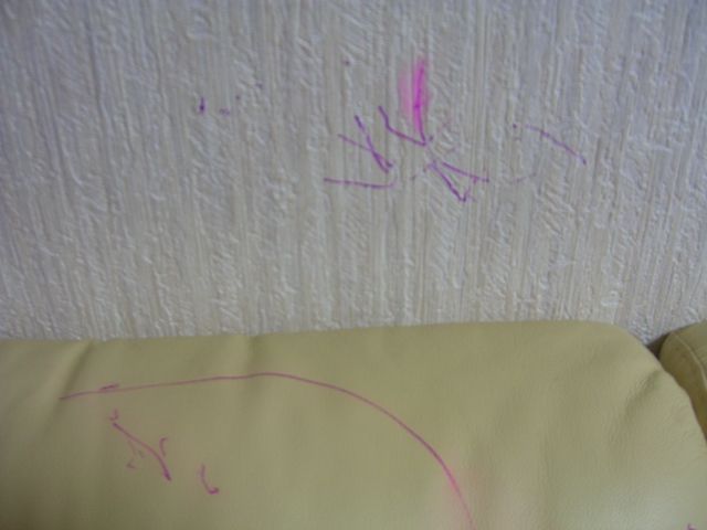 先日の日記に書いた、ぬくみず画伯の壁とソファーに描かれた絵(´д`)