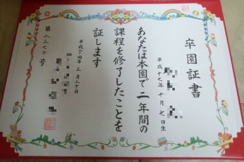 無事にもらってきました卒園証書。
