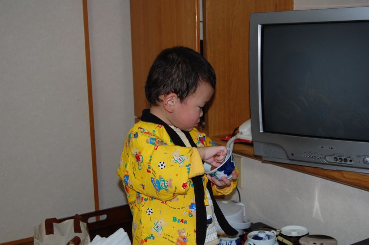 おいてあったお茶のセットで遊んでましたε-(-ω-`;)