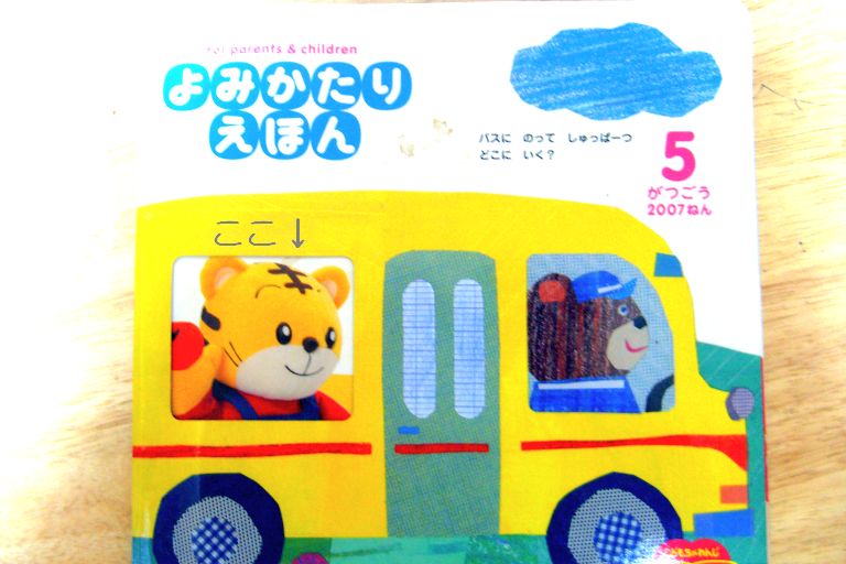 しまじろうの顔は絵本を開いたページにあるって寸法なんですが、